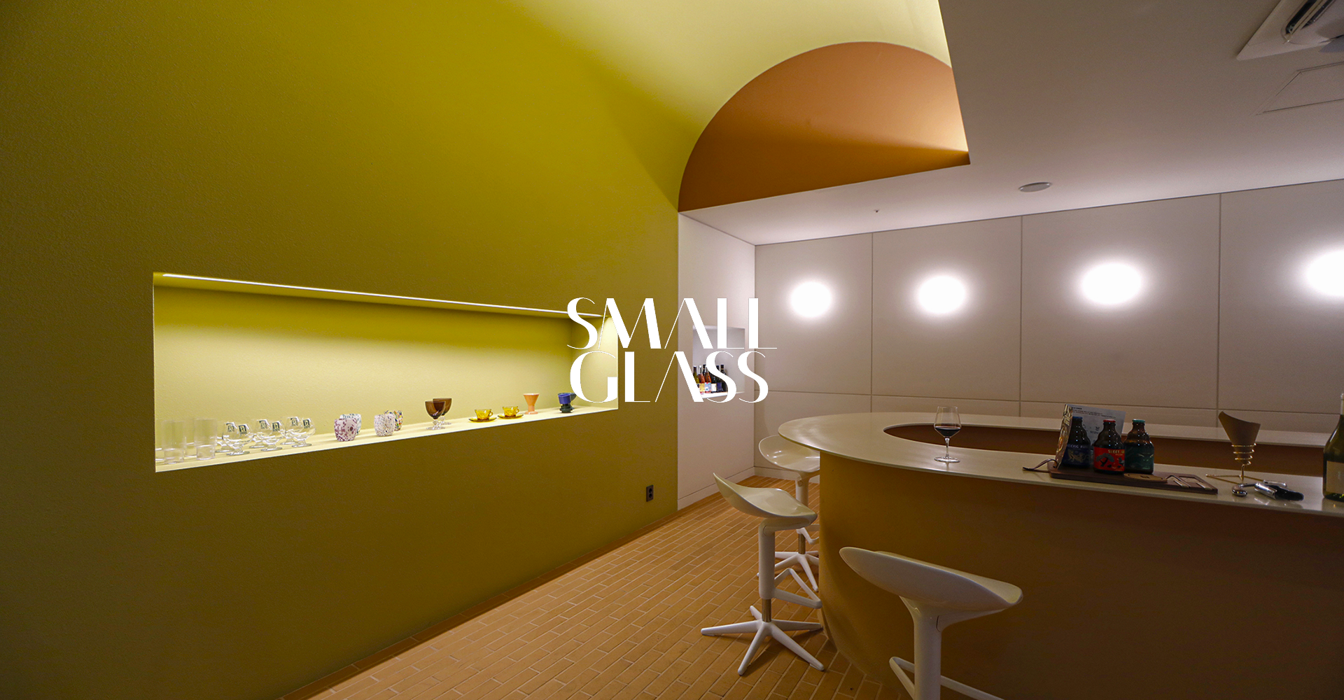 Small Glass is a new type of dining lounge where one can appreciate food paired with wine poured into a cup of their choice. It shows attempts to cross over the boundaries of creative activity and daily life by combining special tableware filled with creators' world of work with the dining culture.